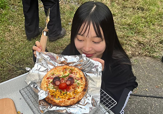 ピザは演習林の技術職員さんが、大谷石で出来ているピザ窯で焼いてくださったピザです。