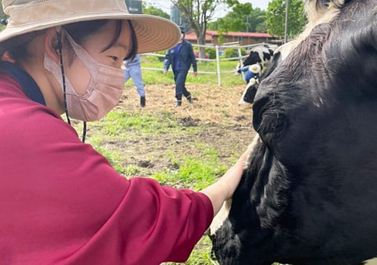 農業実習をはじめ、授業や研究を通して動物と触れ合える機会がたくさんあり、改めて宇大の生物資源科学科で学べて良かったと思っています。