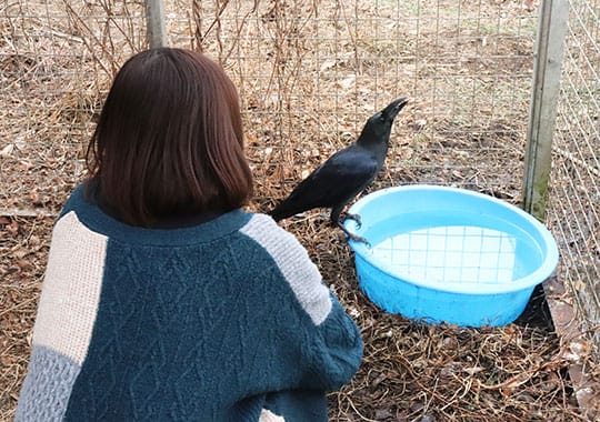小さいころから動物が大好きで、「動物について研究したい」という思いをずっと持っていました。高校3年生のときにカラスに強く興味を持ち、特にクルミを割る姿がかわいくて、「カラスのことをもっと知りたい!」と思うように。